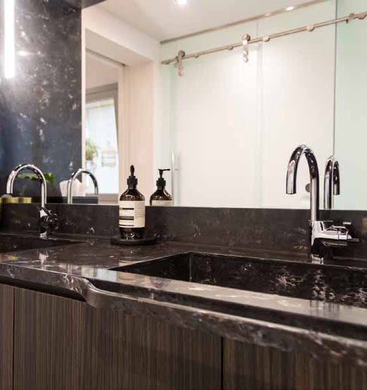 - KHÔNG CÓ VẾT NỐI: HI-MACS cho phép tạo ra các sản phẩm có hình dáng độc đáo liền mạch với kích thước lớn và bề mặt nhẵn bóng không có khớp nối.