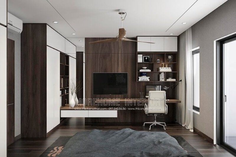 Góc học tập thiết kế tối giản mang lại vẻ đẹp ấn tượng cho phòng của con.