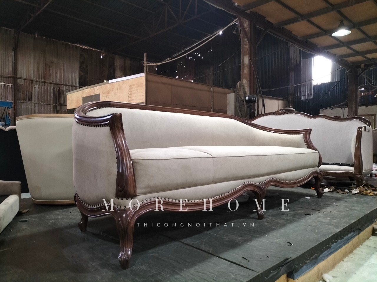Sofa gỗ tự nhiên có thiết kế phong cách tân cổ điển với chất liệu cao cấp.
