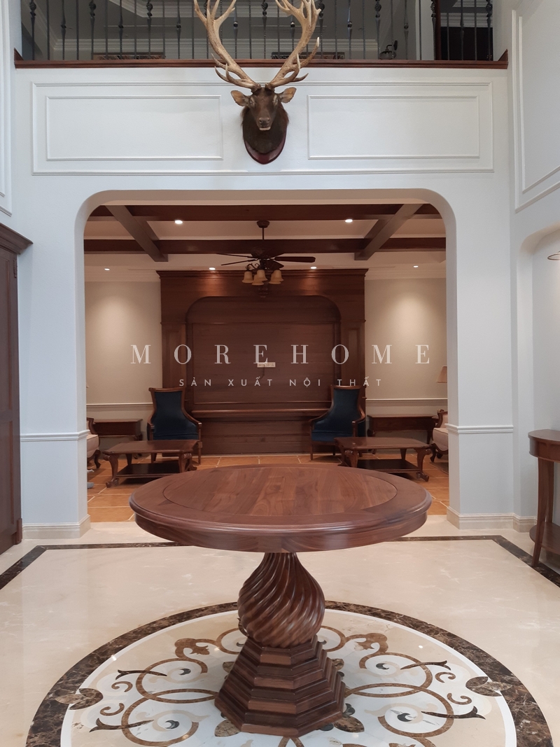 Thi công đôn gỗ óc chó tân cổ điển cao cấp cho không gian sống với nét chạm khắc tinh xảo, tỉ mỉ thẩm mỹ cao