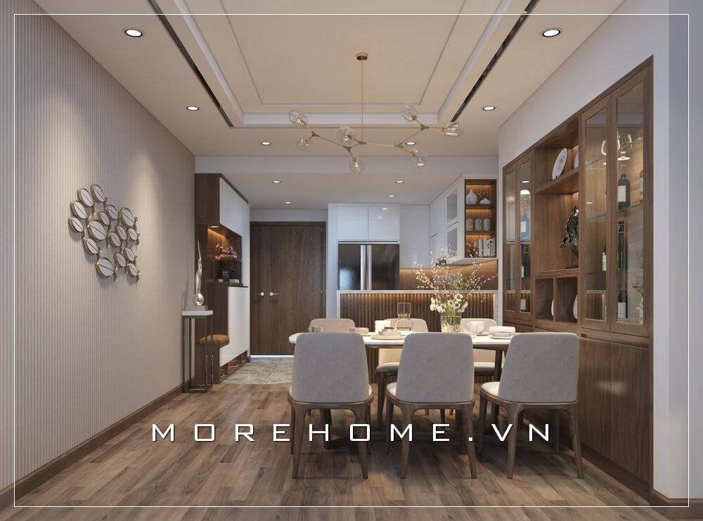 Thiết kế nội thất phòng ăn chung cư hiện đại, sắp xếp đồ đạc tiện nghi, gọn gàng mang đến không gian tiện lợi cho cả gia đình